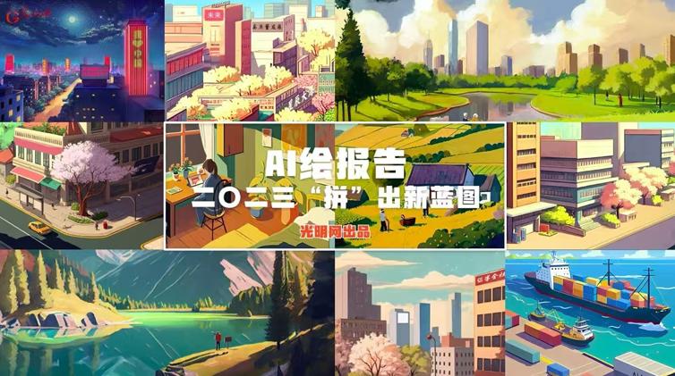 以光明网在2023年全国两会期间推出的《【AI绘报告】2023,“拼”出新蓝图》AI视频为例,该作品通过多种大模型的交叉融合与创新应用,将政府工作报告中的重点场景以全新的视觉维度生动展现。编辑通过巧妙运用AI技术,将原本枯燥的文字报告转化为生动有趣的视觉呈现,使得信息的传播更加生动有趣,更具吸引力。这种跨模态的内容生成方式,不仅丰富了信息的呈现形式,也为编辑工作注入了新的活力。编辑们不再局限于传统的文字编辑方式,而是开始尝试将不同模态的信息进行融合与创新,以更加生动有趣的方式呈现给读者。这种创新的编辑方式,不仅提高了新闻生产的效率和质量,也增强了新闻的表现力和吸引力,为媒体行业的发展注入了新动力。