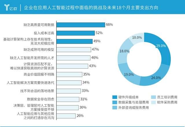 从调研数据来看,缺乏高质量可靠的数据是企业面临最棘手的挑战,其次为投入成本过高、基础计算架构的技术局限性与规模应用。