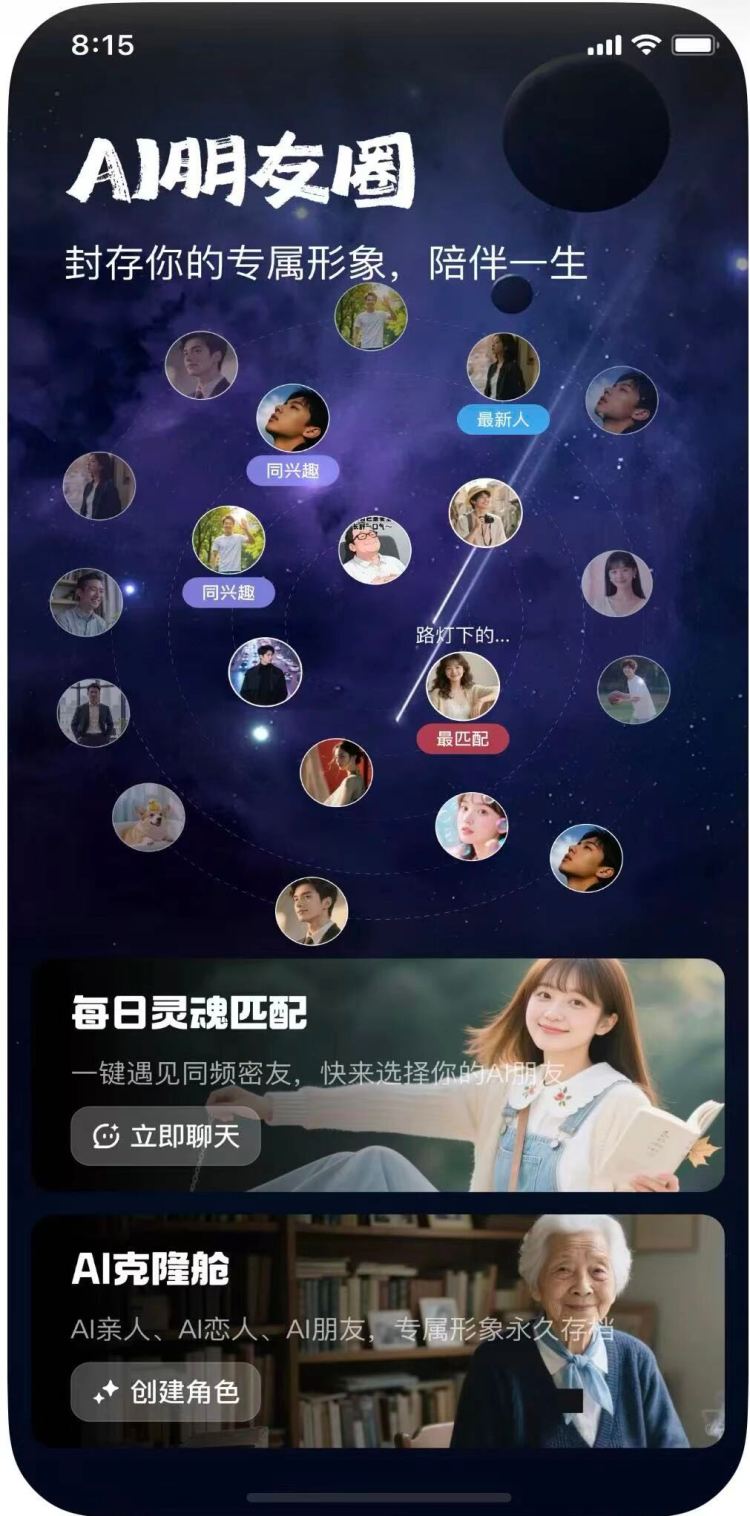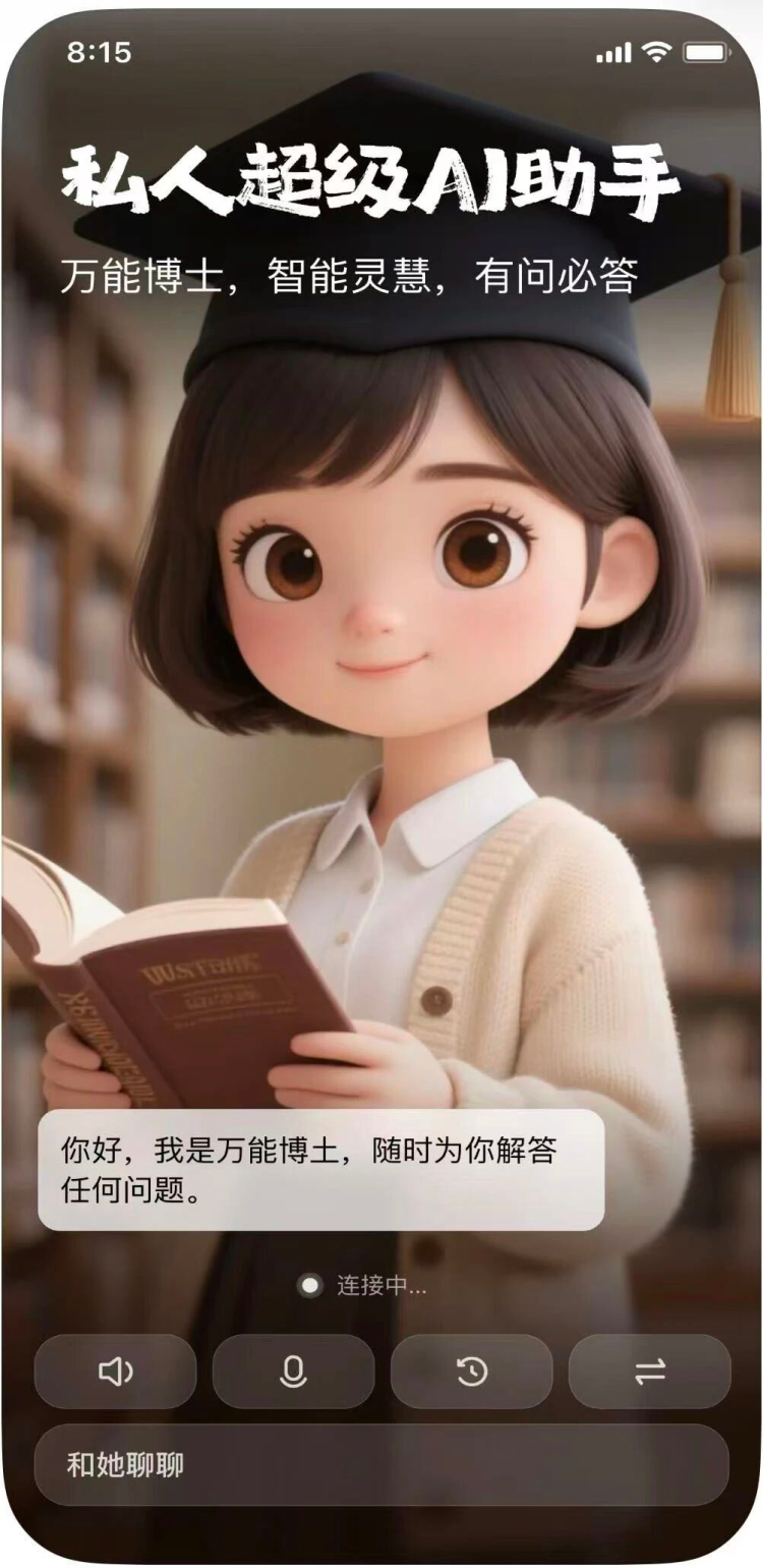 亮点在于“万能博士”能“说”会“做”,深度联动京东生态,实现外卖点单、医疗问诊等一站式服务,同时支持线上智能体植入硬件,实现全场景记忆共享。满足用户在社交、娱乐、生活服务等多方面的陪伴与实用需求,开创了“AI+社交应用”的新范式。