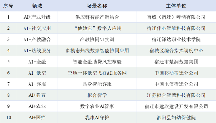 2025年度宿迁市“人工智能+”十大典型应用场景